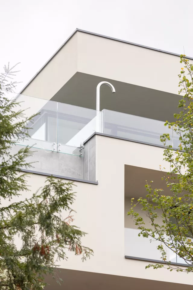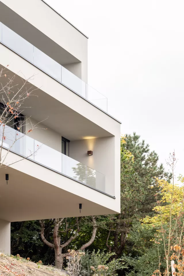 Par sa position et son terrain surélevé, ce projet unique permet de profiter d’une magnifique vue sur le Léman. Deux villas contigües, reliées par un espace de bureau/studio, ont été réalisées. Cette double construction a pour objectif de proposer un ensemble homogène respectant la zone d’affectation ainsi que la loi sur la protection générale des rives du lac et les distances avec la végétation existante.